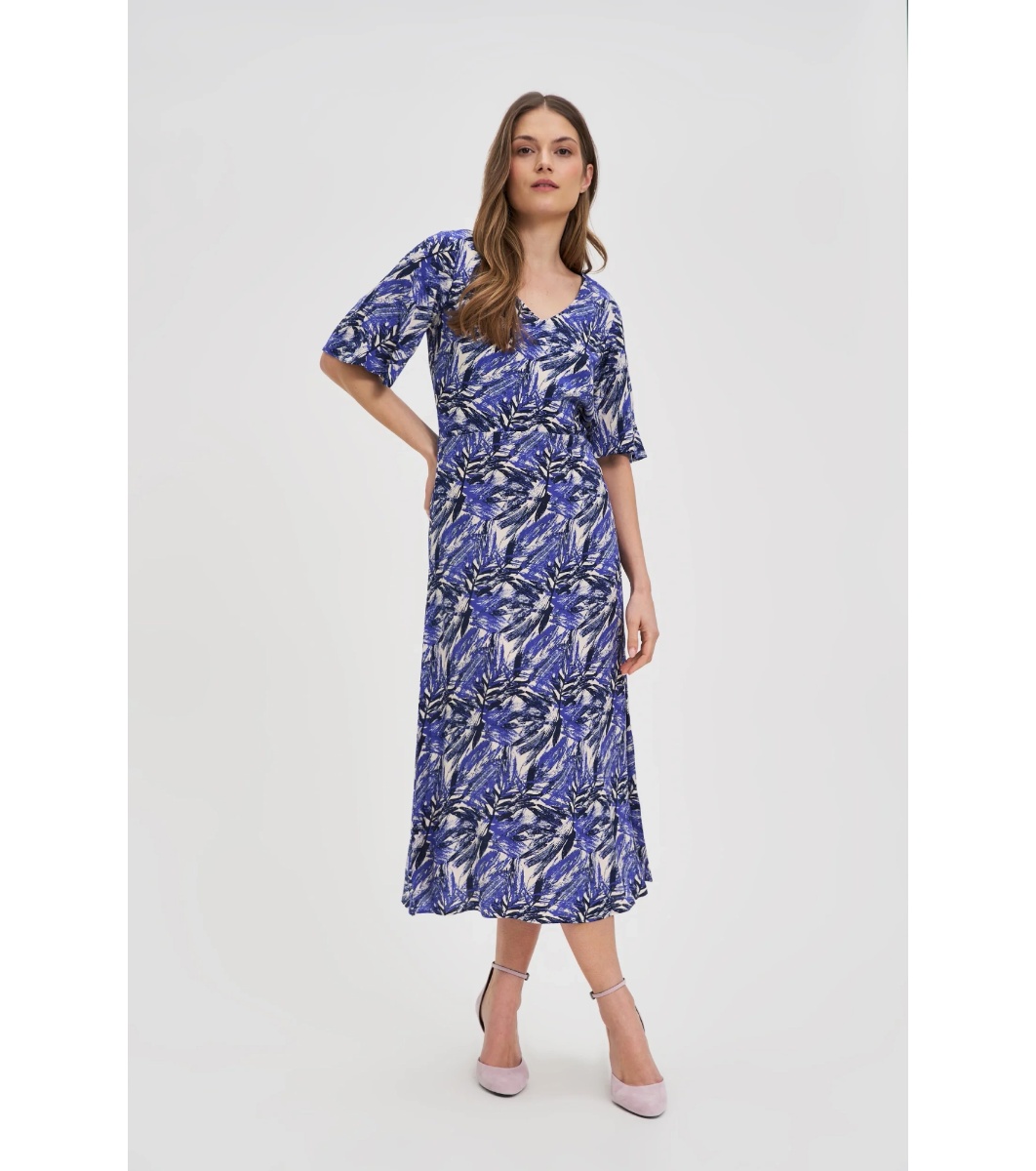 Moodo Rochie în nuanțe de alb și albastru cu imprimeu Decolteu în V
