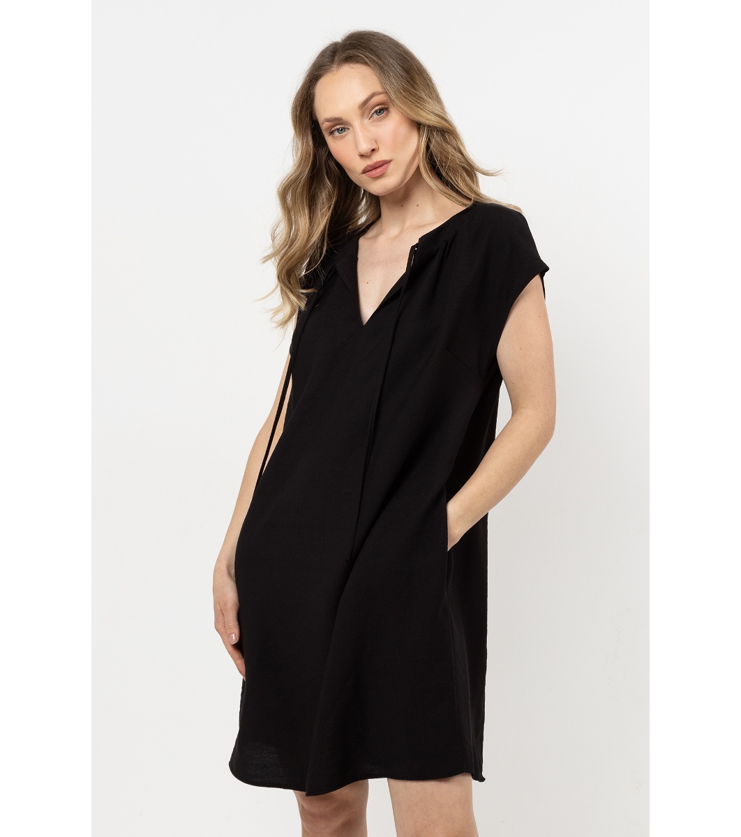 Awama Rochie neagră cu buzunare Madalena Decolteu în V cu nod