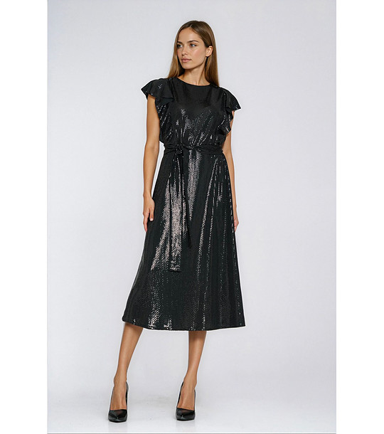 Rochie neagră cu efect strălucitor și mâneci scurte