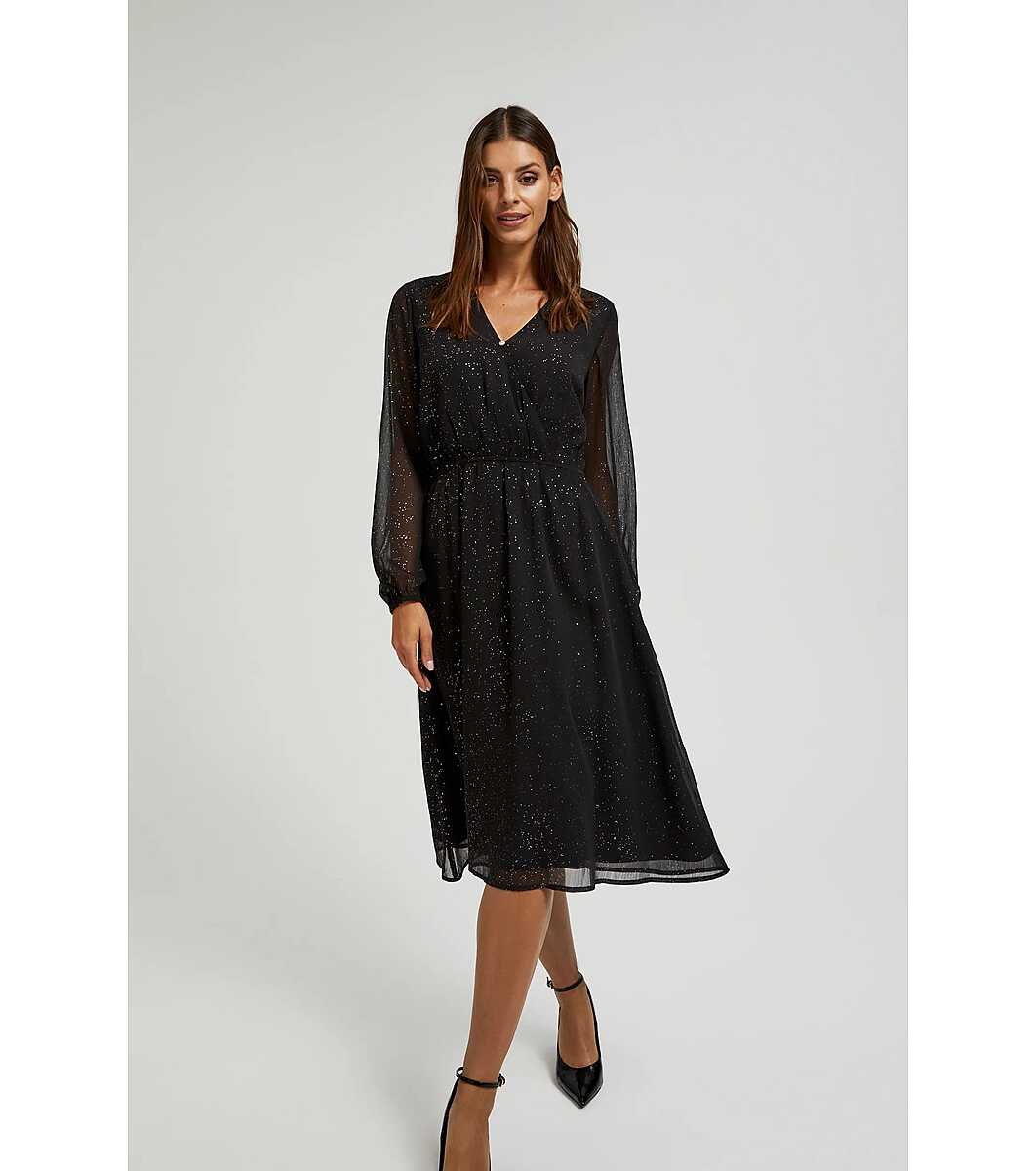 Moodo Rochie neagră cu fire strălucitoare Decolteu în V