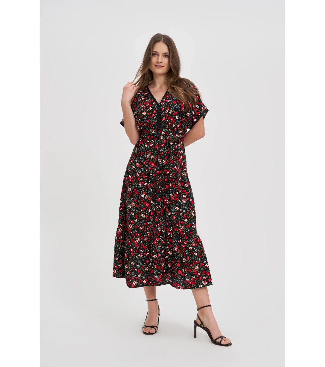 Moodo Rochie neagră cu imprimeu floral Decolteu în V