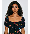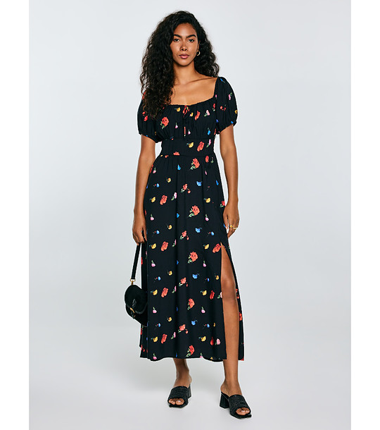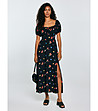Big Star Rochie neagră cu imprimeu floral Roksi Decolteu deschis cu șnur