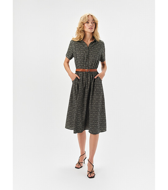 Top Secret Rochie neagră cu imprimeu geometric și buzunare Lungime midi
