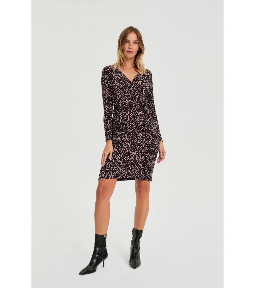 Moodo Rochie neagră cu mânecă lungă și imprimeu Rochie mulată