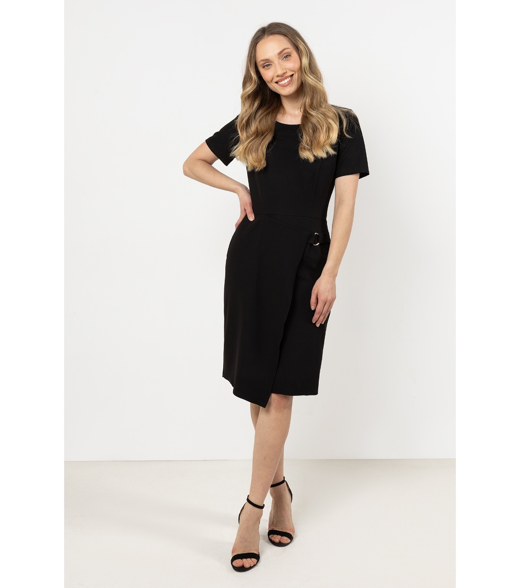 Awama Rochie neagră cu mânecă scurtă Anna Decolteu rotund