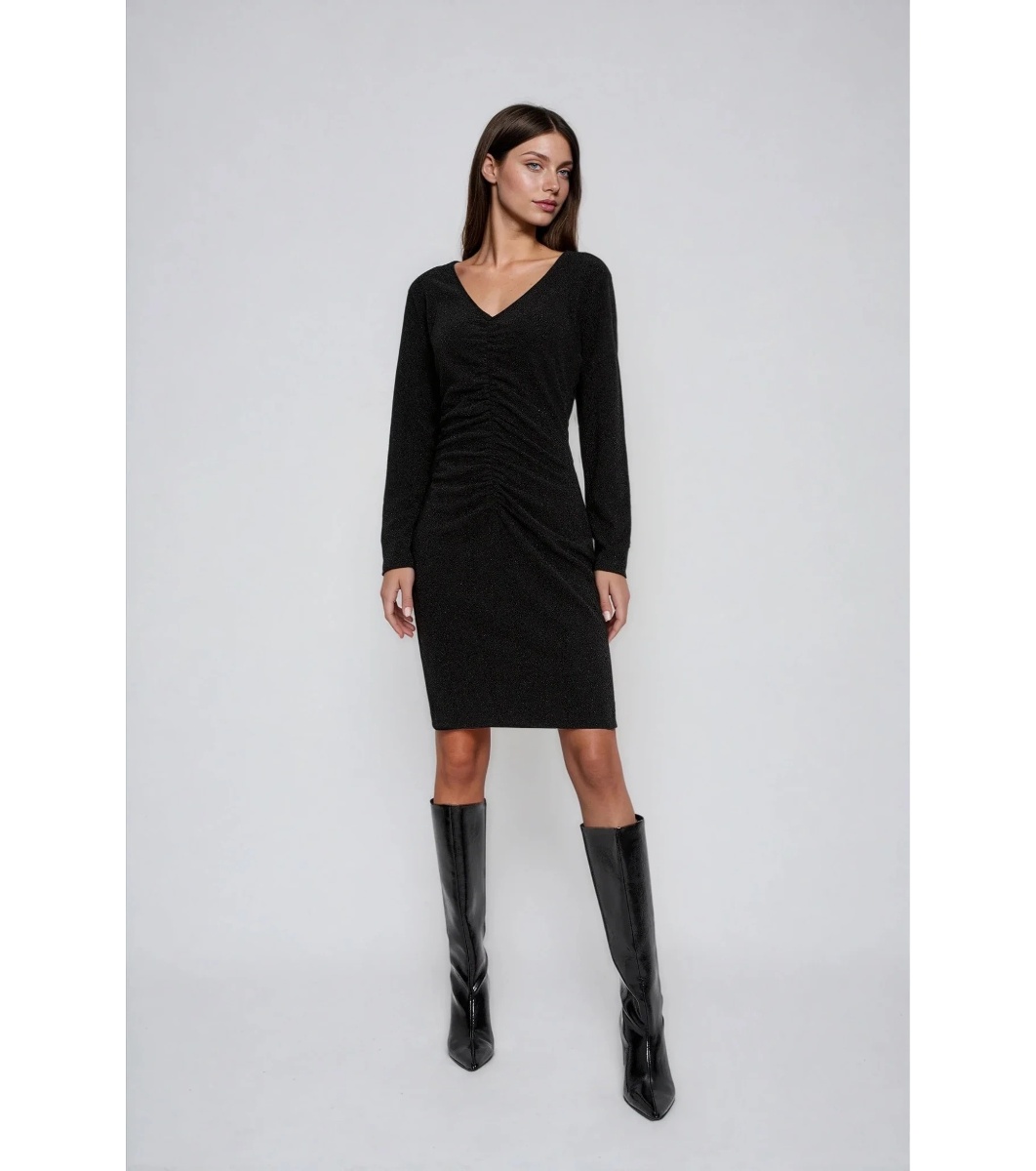 Moodo Rochie neagră cu pliuri Decolteu în V.