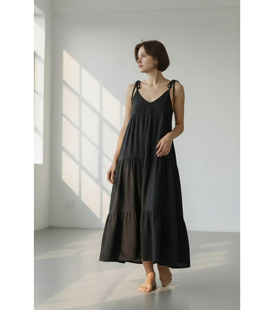 Assuili Rochie neagră fără bretele NOIR Rochie lungă cu croială dreaptă și lejeră.