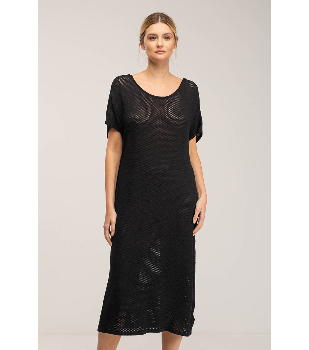 Tantra Rochie neagră supradimensionată din tricot fin Decolteu rotund