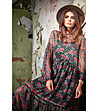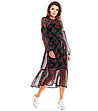 Awama Rochie neagră vaporoasă cu imprimeu cu trandafiri Caren Decolteu rotund