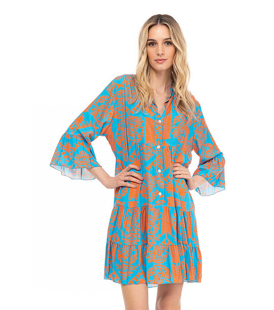 Tantra Rochie oversize în portocaliu și turcoaz cu imprimeu Adelaide