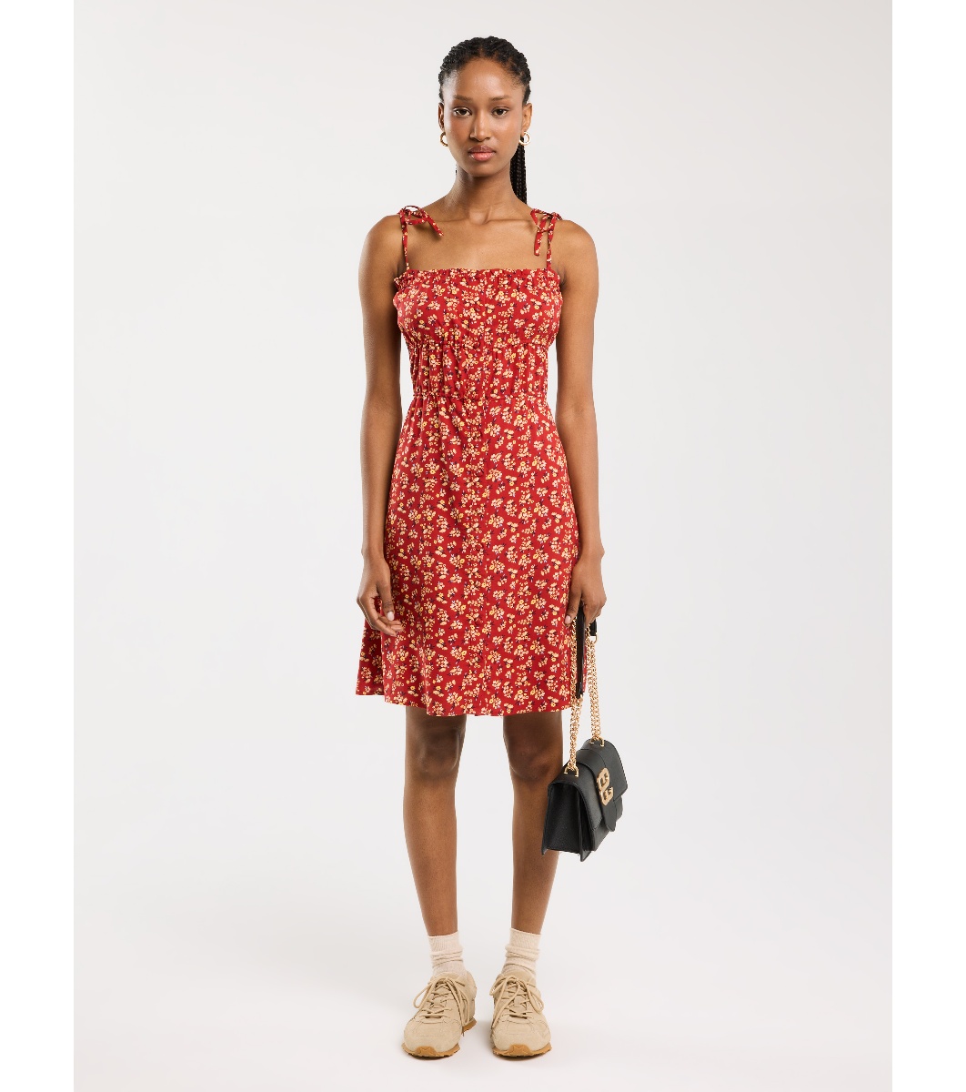 Big Star Rochie roșie cu imprimeu floral Casie Bretele subțiri cu legături