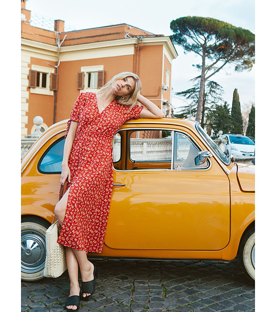 Big Star Rochie roșie cu imprimeu floral PAREGI Decolteu în V