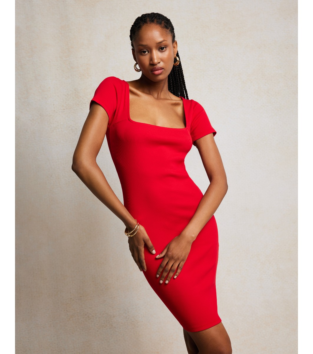 Big Star Rochie roșie din bumbac FELICE Decolteu pătrat