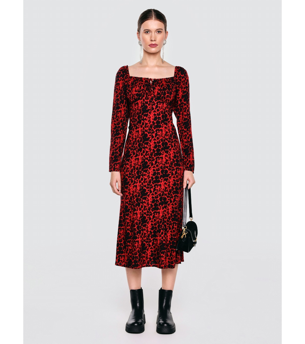 Big Star Rochie roșie și neagră Decolteu pătrat cu nod