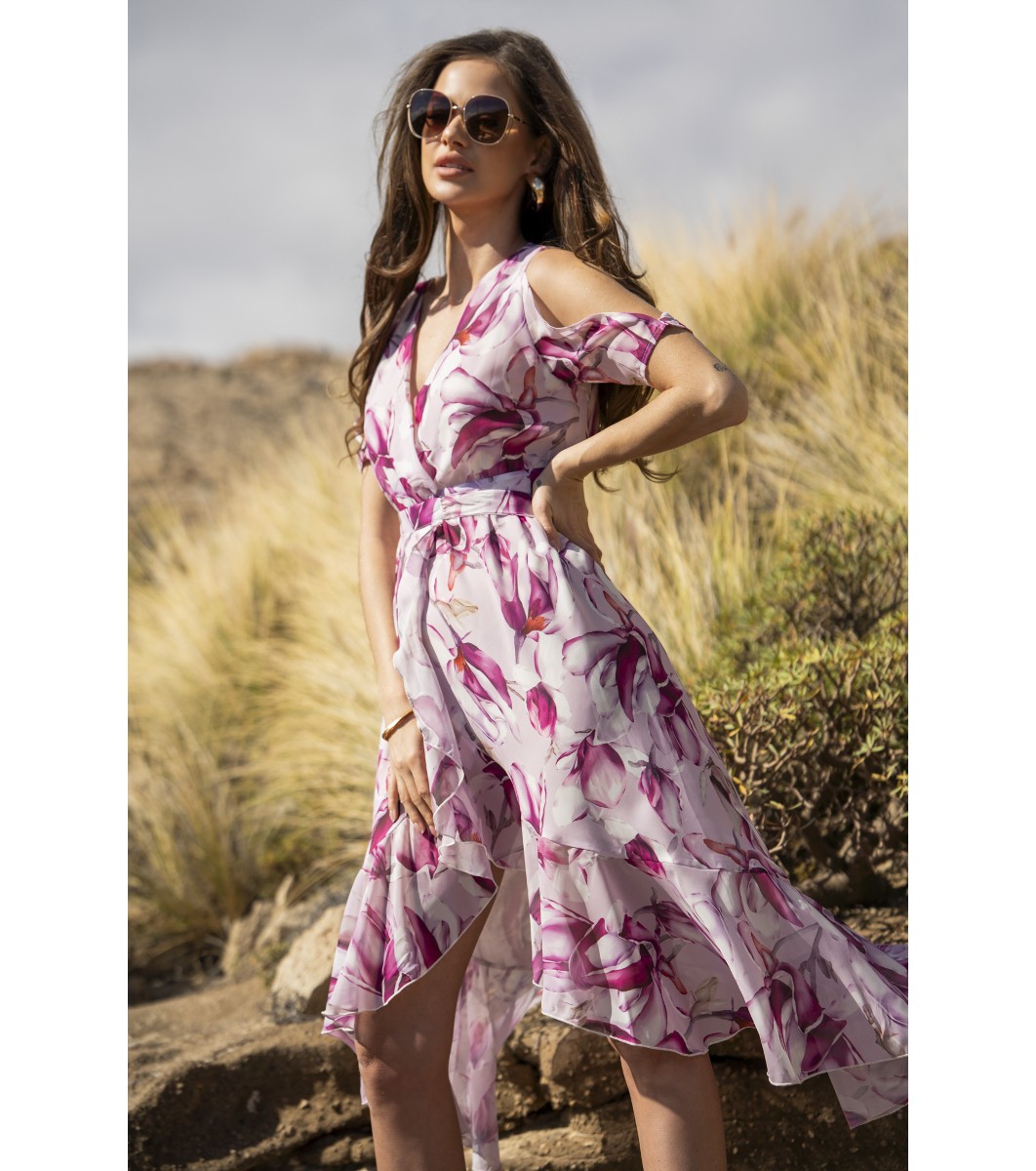 Awama Rochie roz cu imprimeu floral Lamilia Decolteu în V