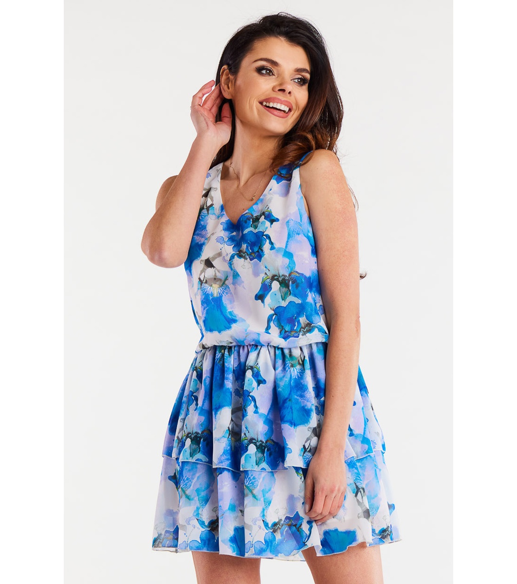 Awama Rochie scurtă din șifon în alb și albastru Berta Decolteu în V