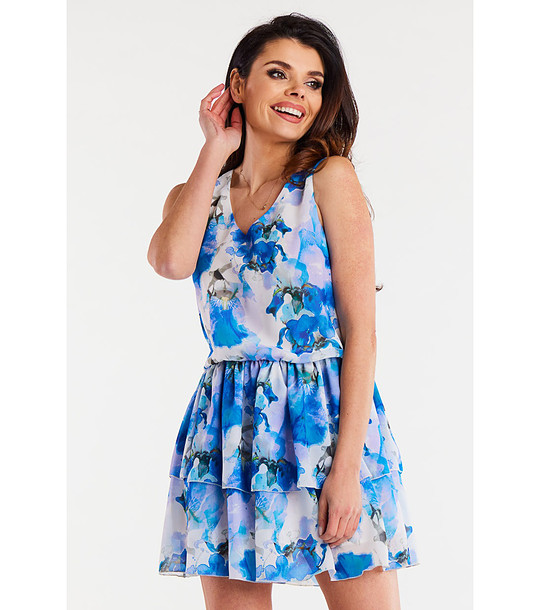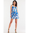 Rochie scurtă din șifon în alb și albastru Berta