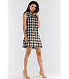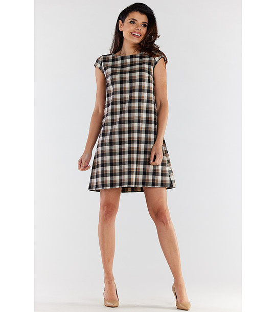 Awama Rochie scurtă în carouri maro și bej Decolteu tip barcă