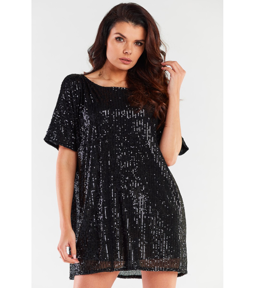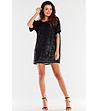 Awama Rochie scurtă spectaculoasă cu paiete în negru Jina Decolteu rotund
