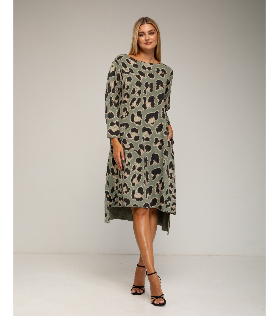 Tantra Rochie supradimensionată din bumbac, kaki și negru Decolteu tip barcă