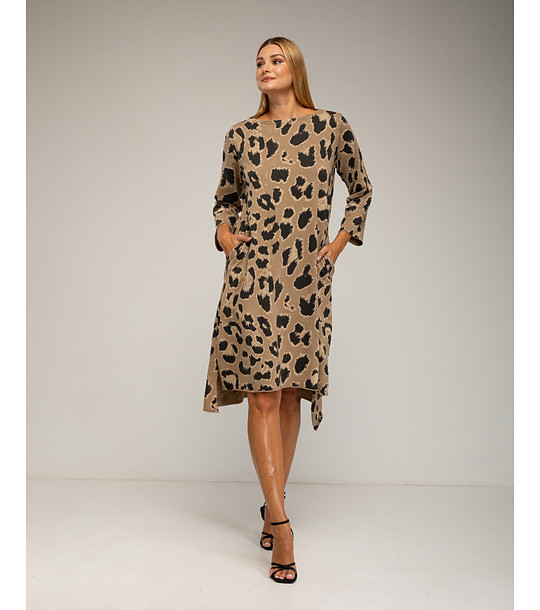 Rochie supradimensionată din bumbac, în culorile cămilă și negru