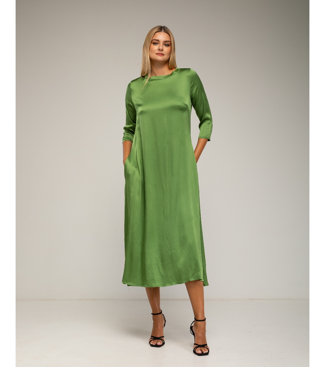 Tantra Rochie supradimensionată verde cu mătase Decolteu tip barcă