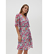 Rochie vaporoasă cu imprimeu floral în ciclam și albastru