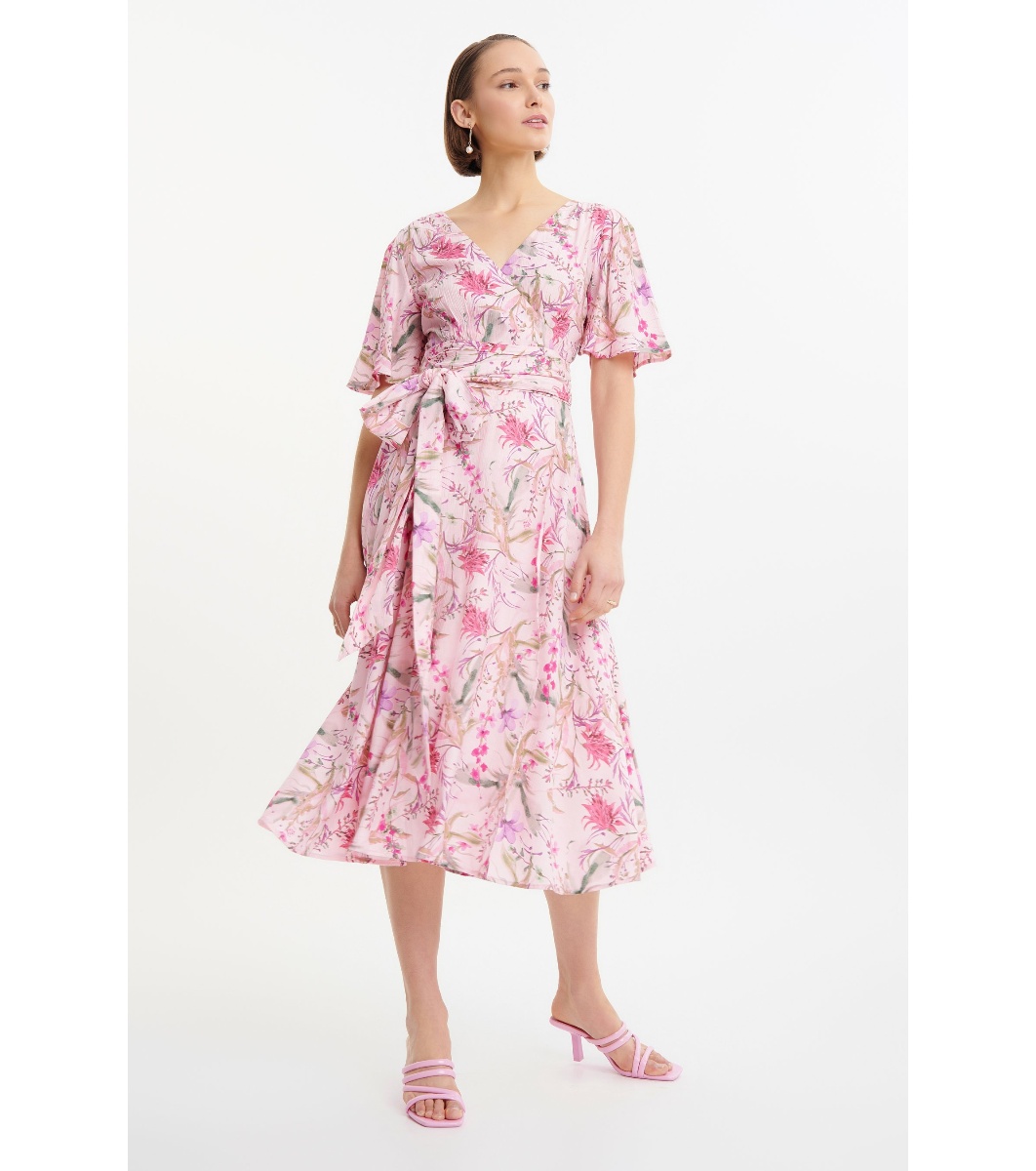 Greenpoint Rochie vaporoasă roz cu imprimeu floral Decolteu în V