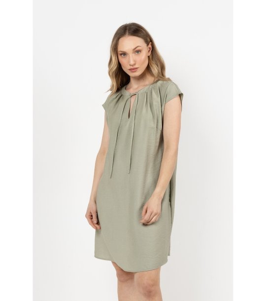 Awama Rochie verde cu buzunare Greta Decolteu în V cu șnur