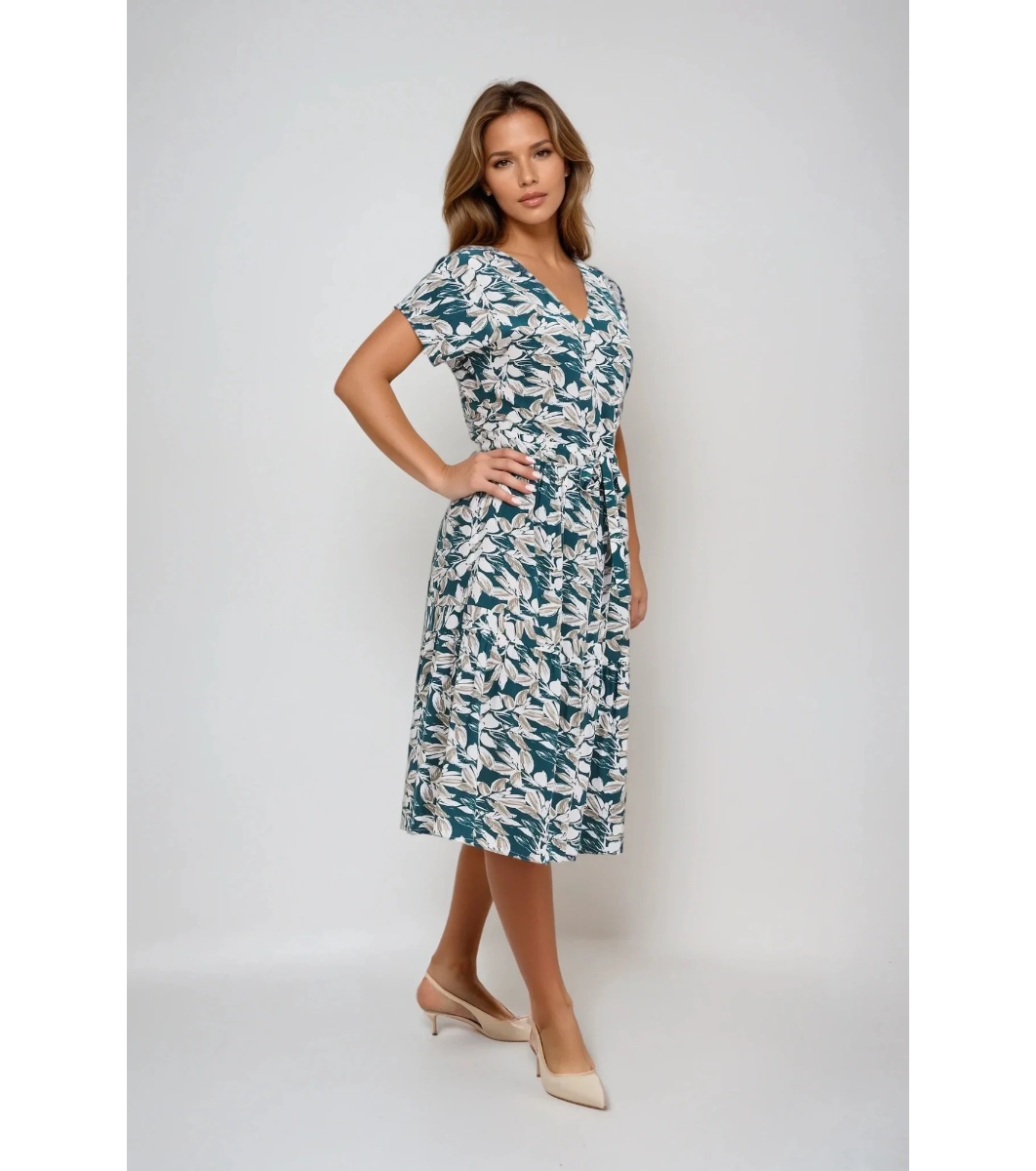 Moodo Rochie verde cu imprimeu floral Decolteu în V