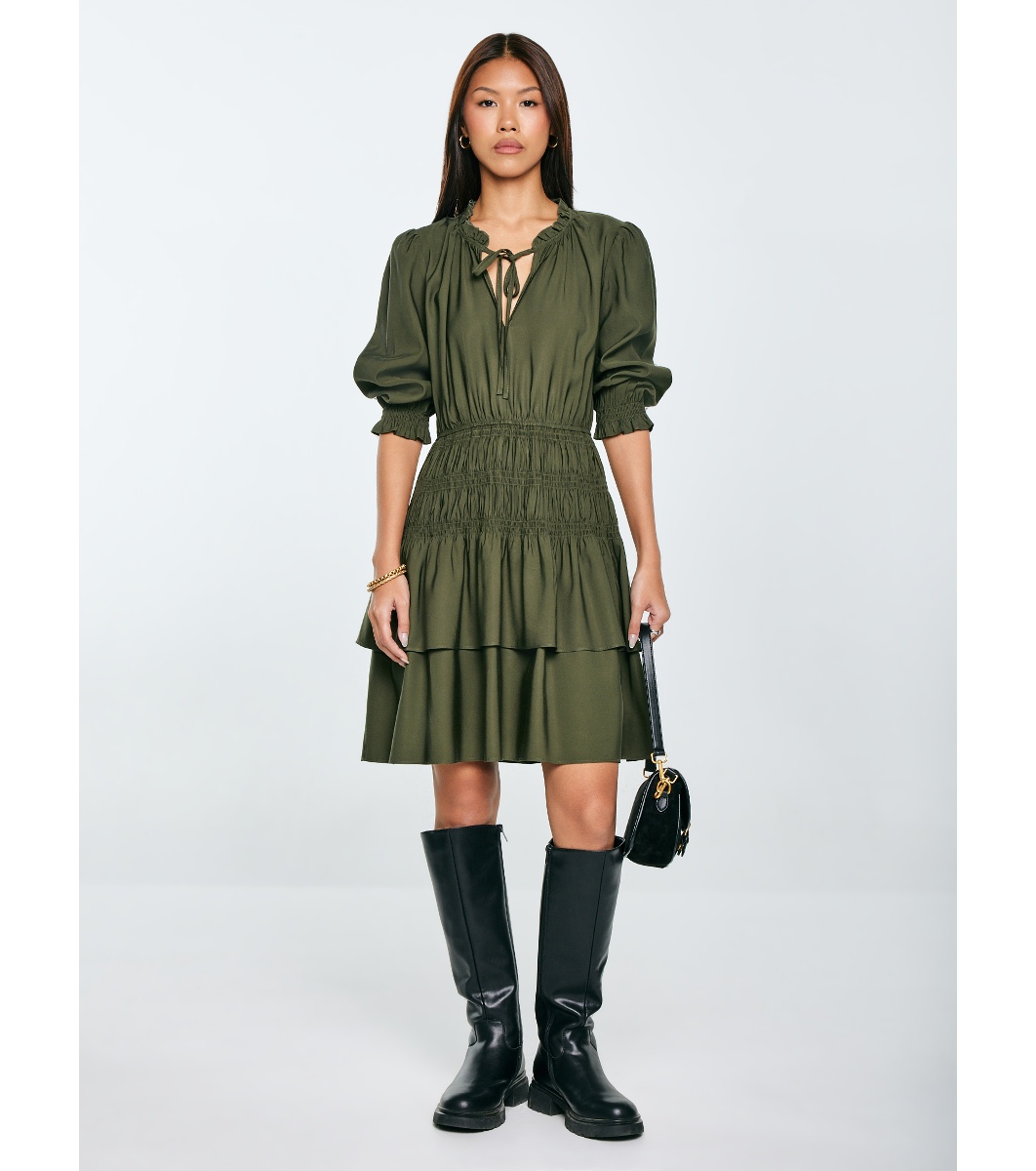 Big Star Rochie verde cu mâneci bufante Decolteu în V cu legătură