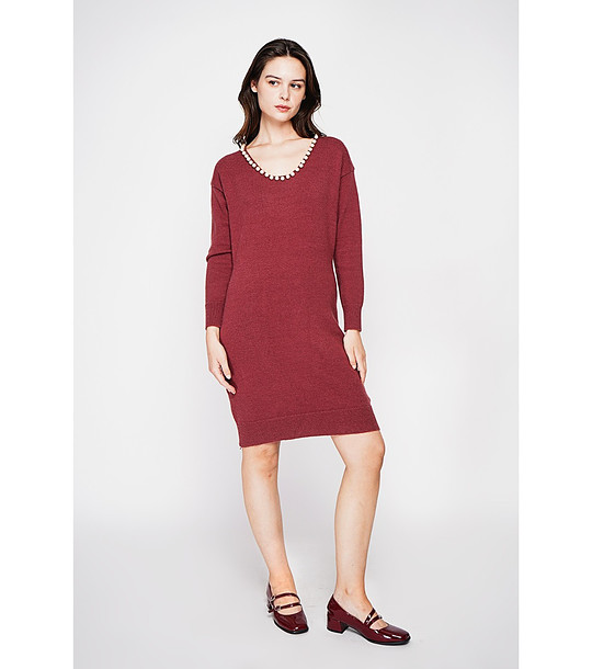 C&Jo Rochie vișinie cu perle Decolteu rotund cu perle