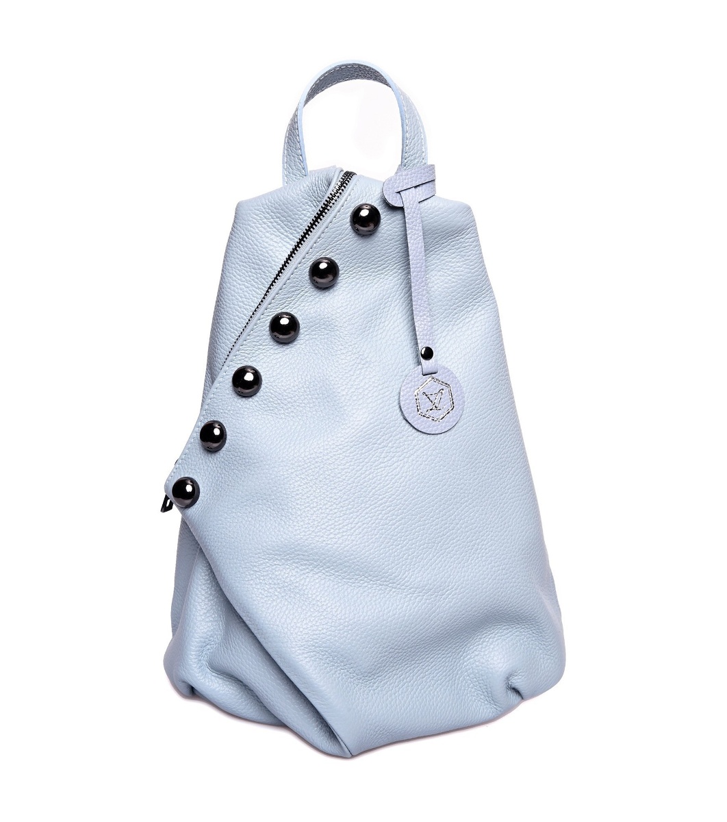 Rucsac de damă din piele non-standard, de culoare albastru deschis, Evelina