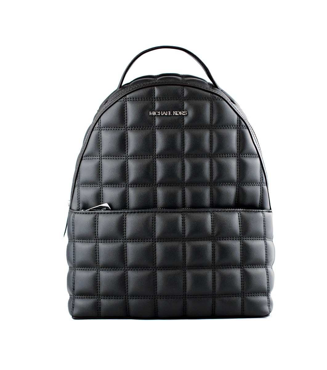 Rucsac elegant pentru femei, cu motiv pătrat și mâner confortabil de transport. Rucsacul are un compartiment principal și un buzunar frontal, închis cu fermoar.