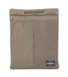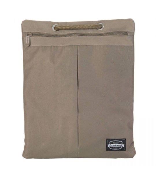 Rucsac dreptunghiular cu fermoare. Mâner din frânghie pentru transport ușor. Emblemă în colțul inferior.