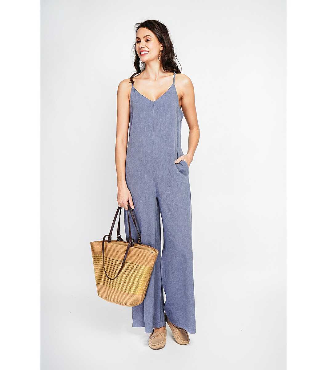 William de Faye Salopetă de damă albastră din bumbac și in Decolteu în V