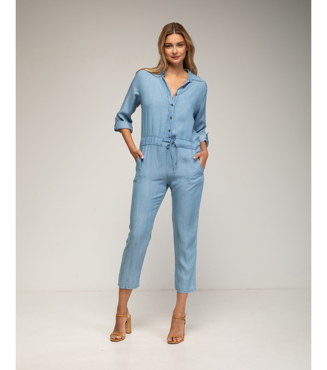 Tantra Salopetă de damă albastru deschis cu aspect denim Guler clasic