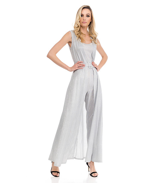 Salopetă de damă argintie cu efect de sclipici