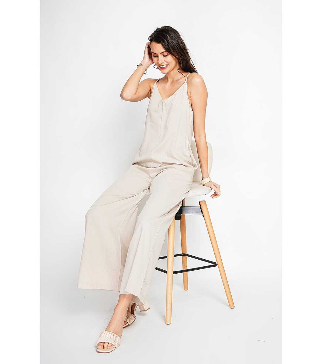 Salopetă de damă bej din bumbac și in