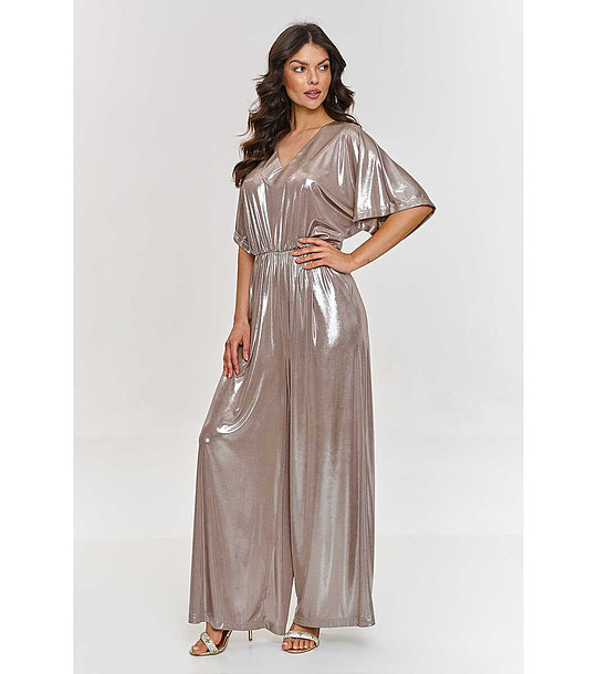 Salopetă de damă de culoare cappuccino cu efect strălucitor Mirella