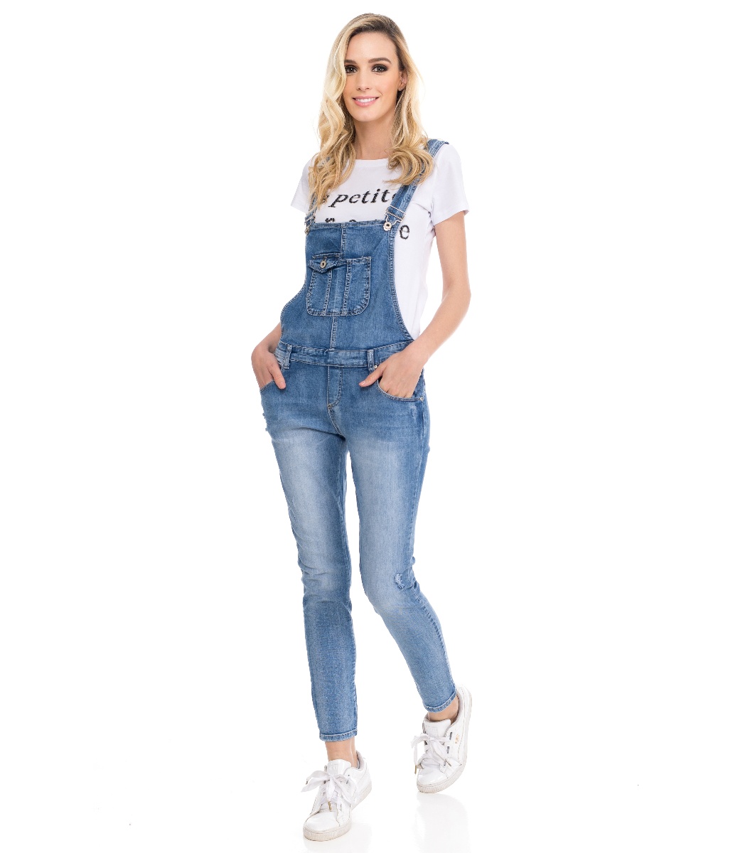 Tantra Salopetă de damă din denim albastru deschis Bretele cu catarame