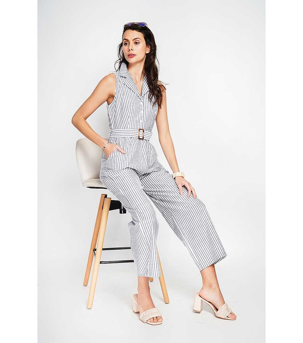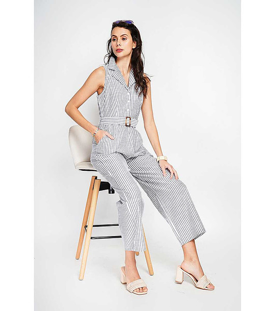 Assuili Salopetă de damă în dungi alb și negru Oliana Salopetă din bumbac și in