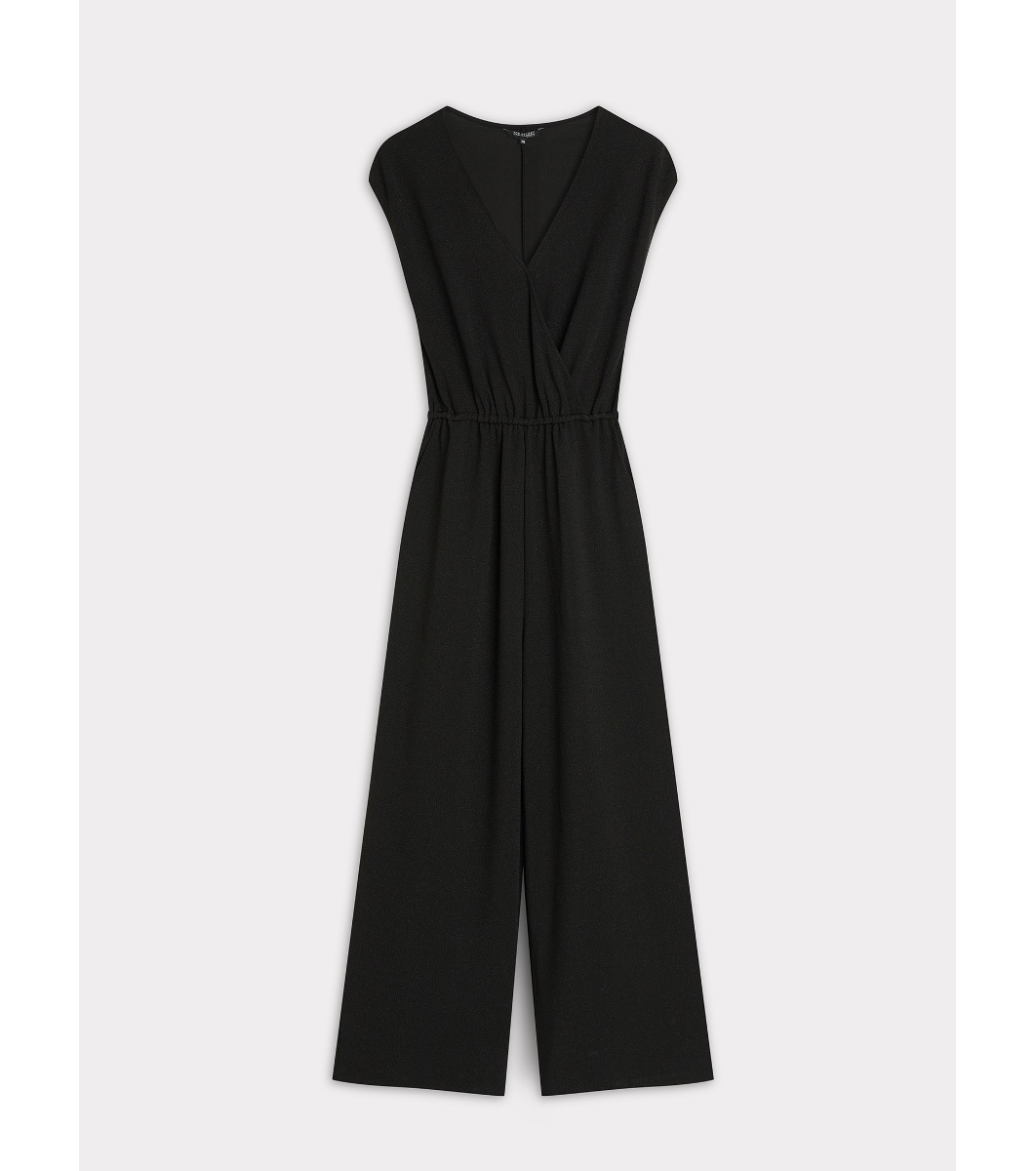 Top Secret Salopetă neagră cu guler acoperitor Fără mâneci cu decolteu acoperitor în formă de V
