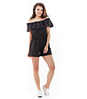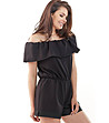 Infinite you Salopetă neagră de damă cu material Biana din bumbac Decolteu elastic cu volane
