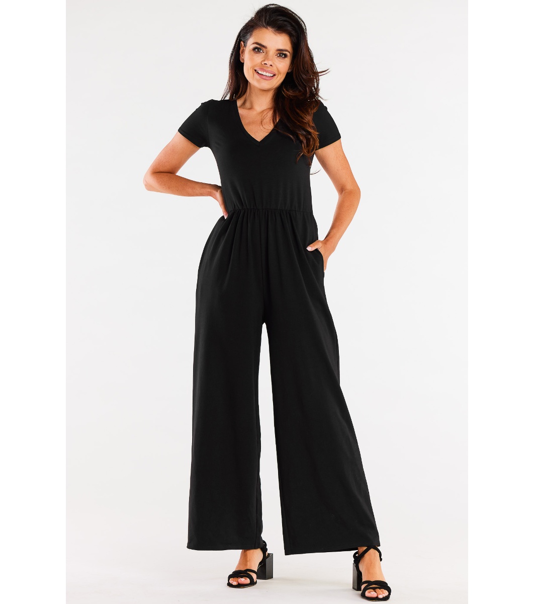 Infinite you Salopetă neagră de damă din bumbac Decolteu în V