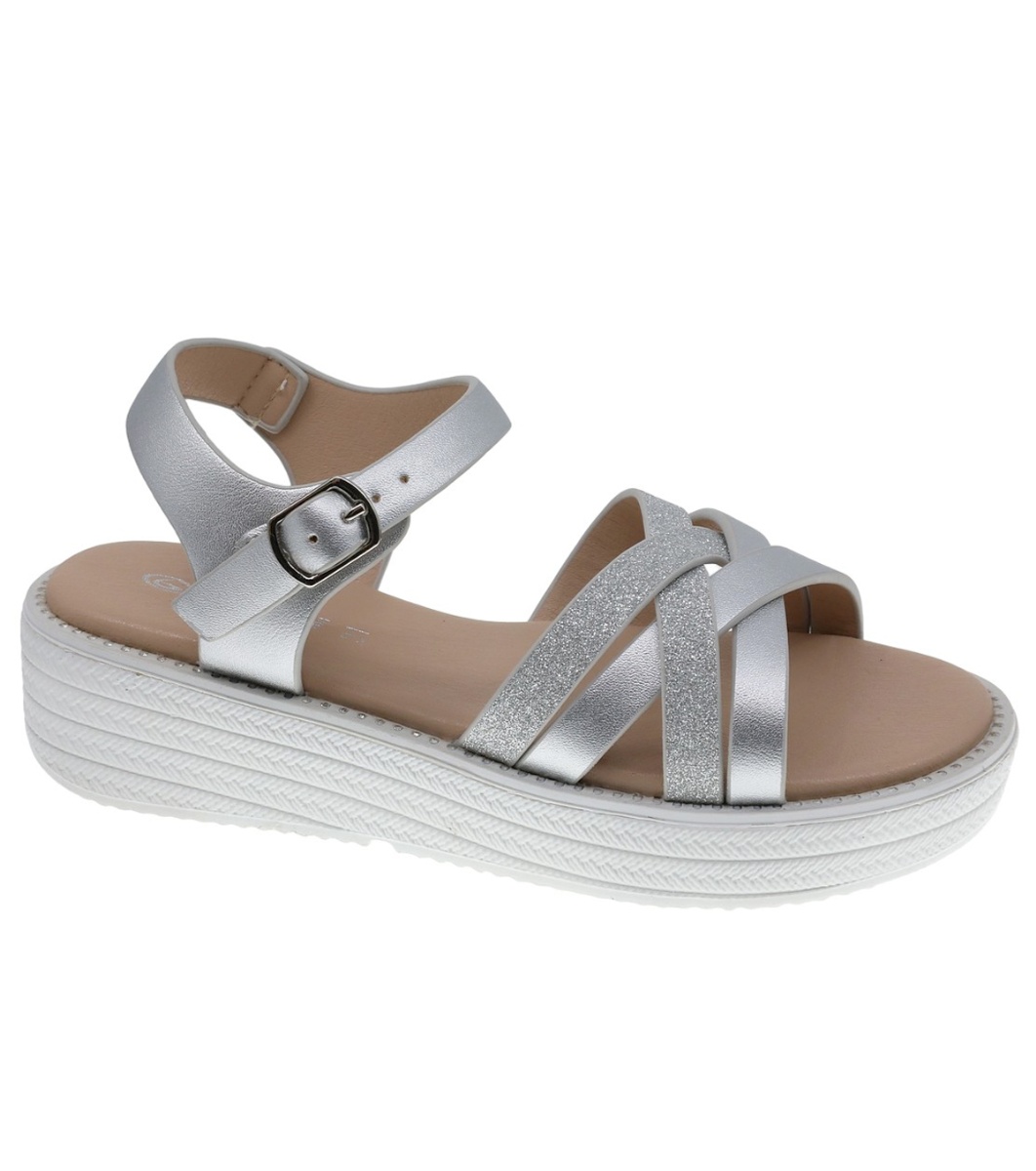 Beppi Sandale argintii cu platformă pentru copii Baretă subțire în față care se împletesc
