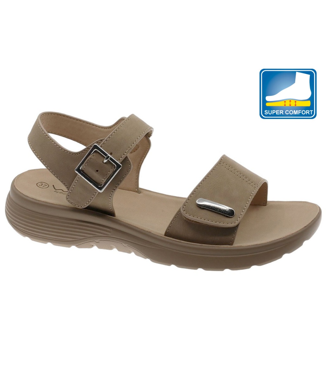 Beppi Sandale de damă de culoare taupe curea velcro în față