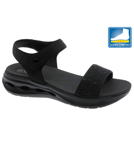 Beppi Sandale de damă negre cu pietricele în față Bareta lată în față