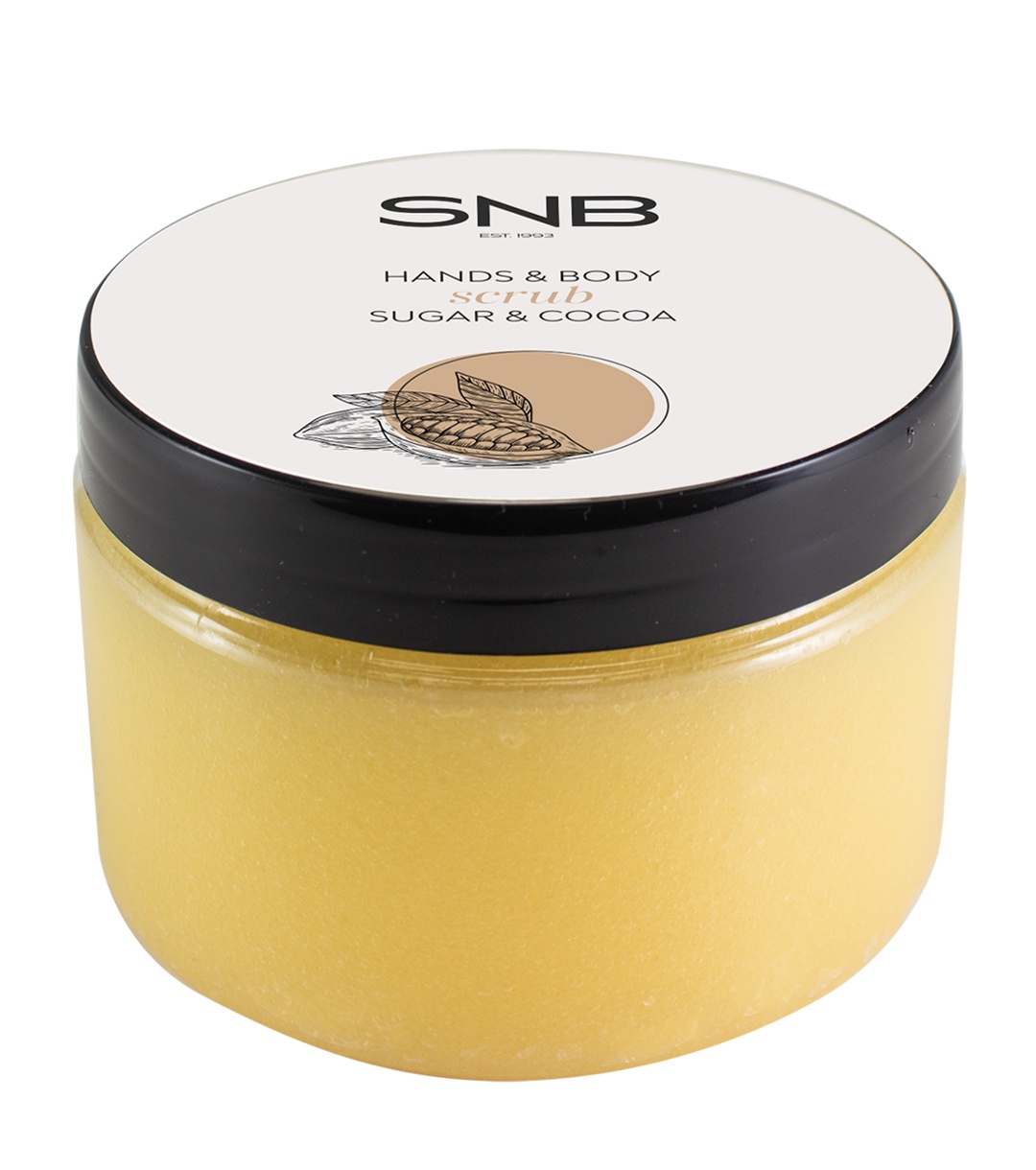 Scrub-ul cu zahăr, cacao și uleiuri vegetale de la SNB exfoliază și curăță pielea picioarelor, hidratând-o, catifelând-o și îmbunătățind elasticitatea, cu o aromă de ciocolată și nucă de cocos.