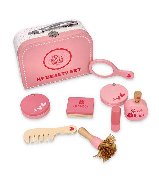Fiecare doamnă are nevoie de o valiză pentru copii cu accesorii din lemn pentru femei. Cu ei, va putea să se simtă ca o fată mare și să joace jocuri în care se va machia ca mama.